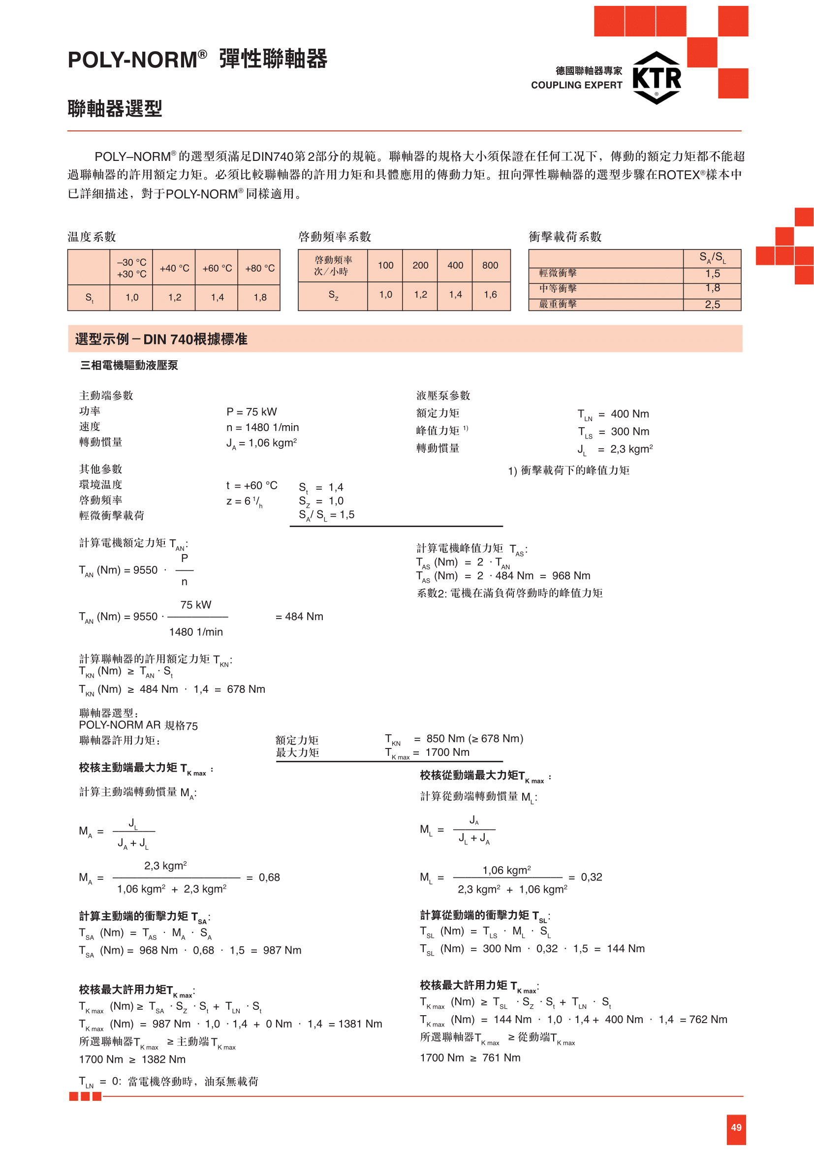 聯軸器規格選用(資料來源-KTR)