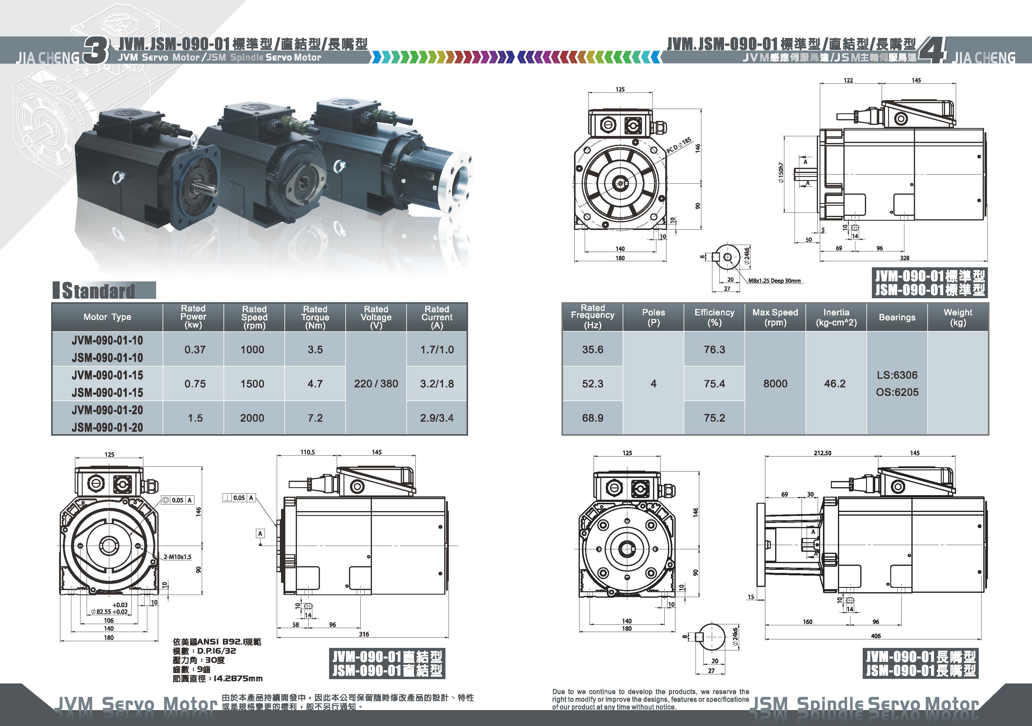 JSM Spindle Servo Motor\JSM-090 (3.5~26.3 N-m)\JSM-090-01 主軸伺服馬達