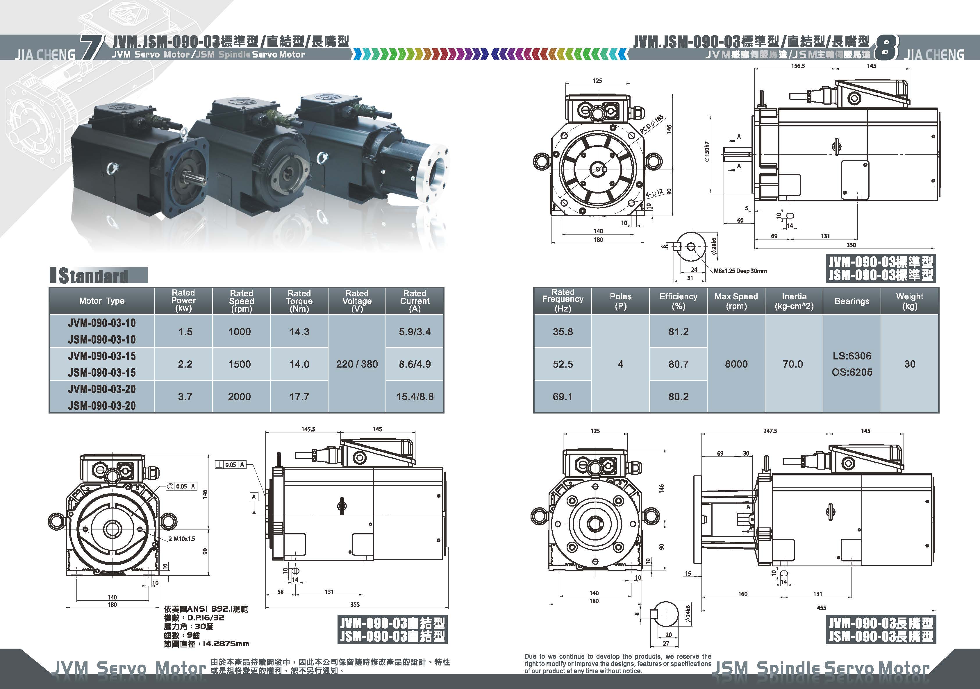 JSM Spindle Servo Motor\JSM-090 (3.5~26.3 N-m)\JSM-090-03 主軸伺服馬達