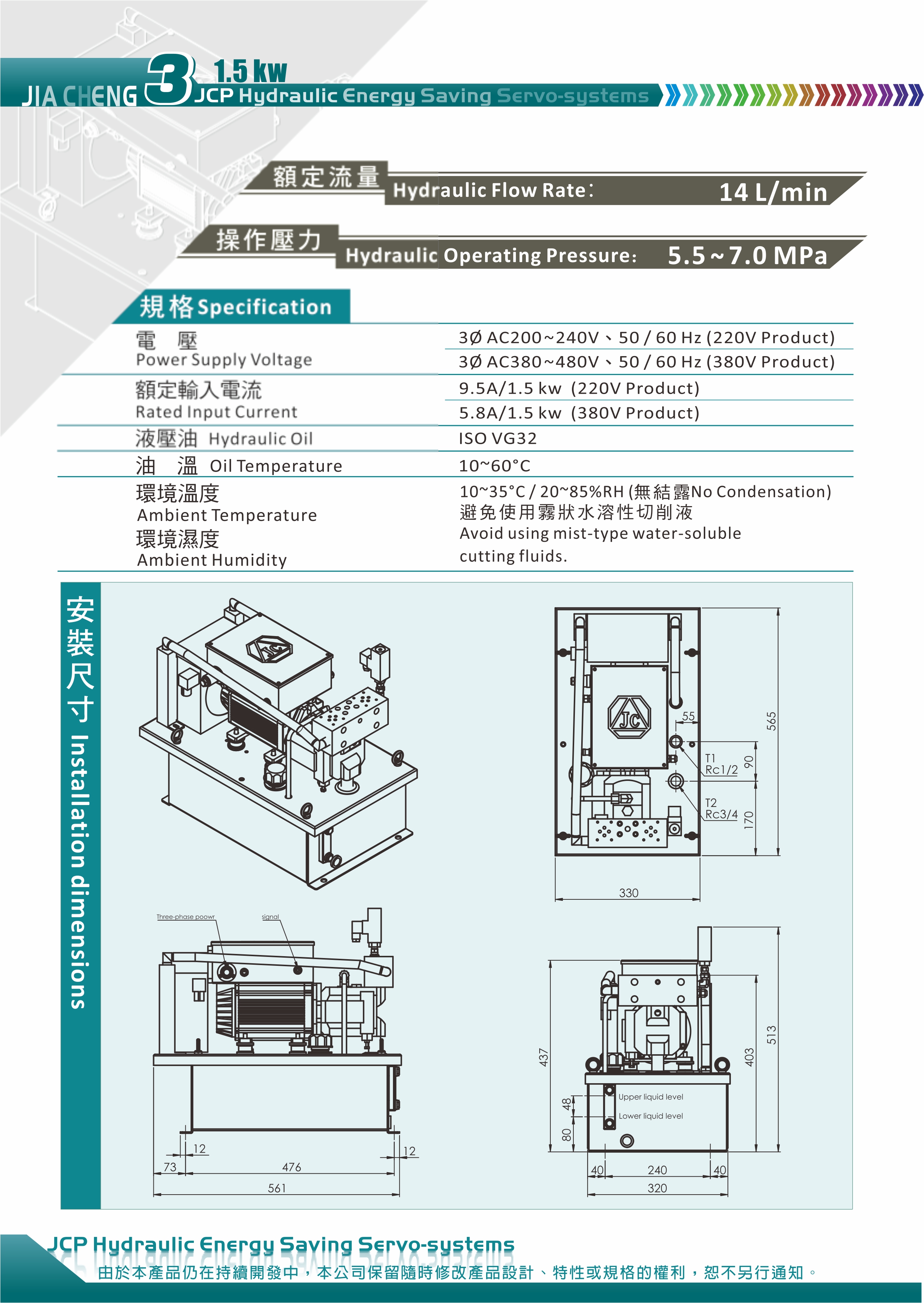 JCP Hydraulic Energy Saving Servo-Systems\14 L/min;5.5~7.0 MPa