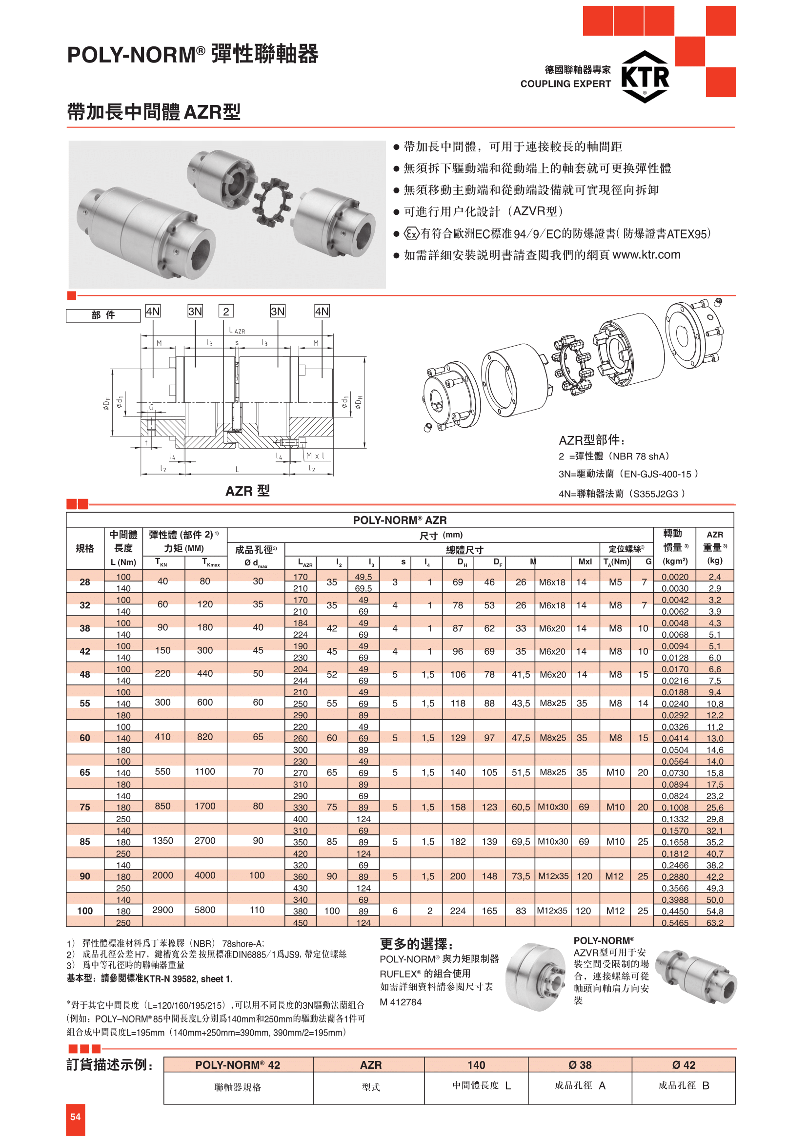 聯軸器規格選用(資料來源-KTR)